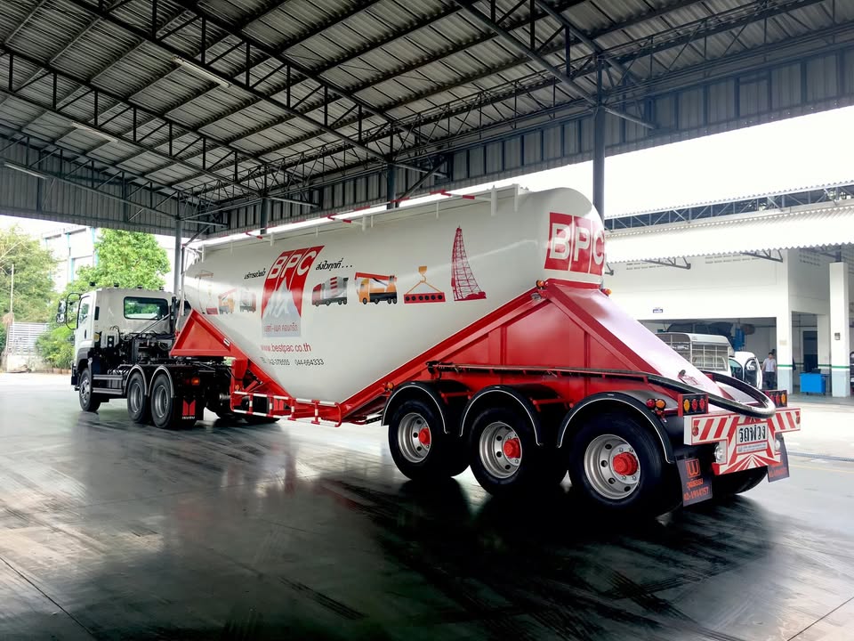 - รถบรรทุกปูนผง รถบรรทุกที่เหมาะสมกับการใช้งาน ISUZU GXZ หัวลาก+หางพ่วงตัวถังแบบปูนผง (กล้วยหอม)