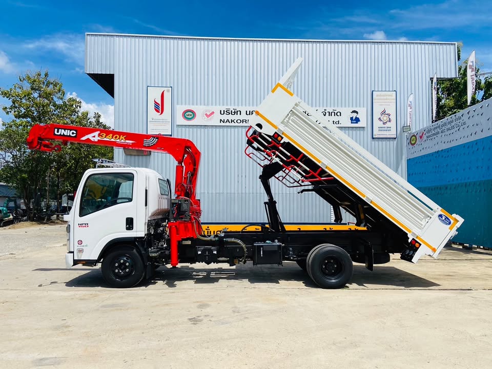 - วัสดุก่อสร้าง (ร้านวัสดุก่อสร้าง) รถบรรทุกที่เหมาะสมกับการใช้งาน ISUZU FRR/NPR ตัวถังแบบกระบะดัมพ์พร้อมเครน